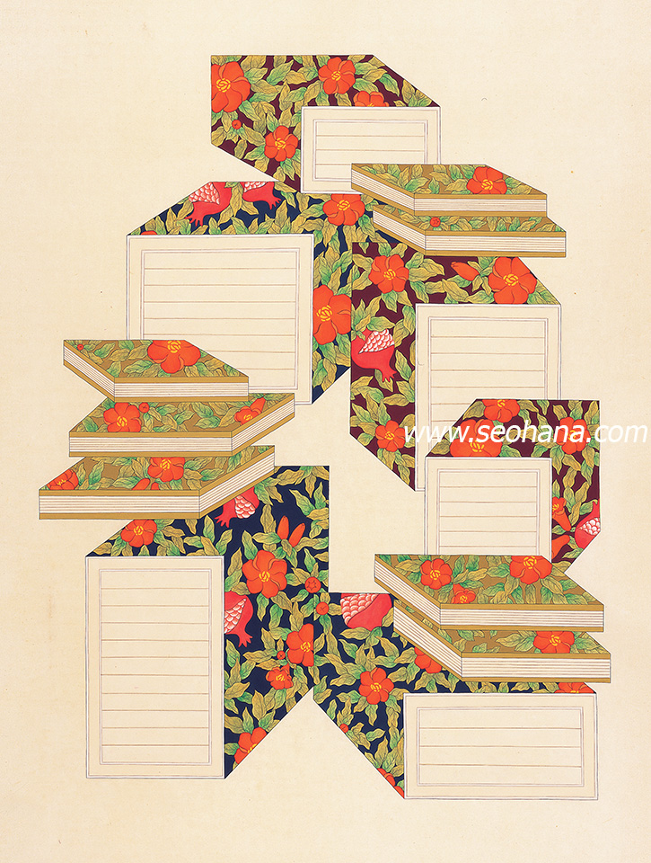 한지에 분채, 석채